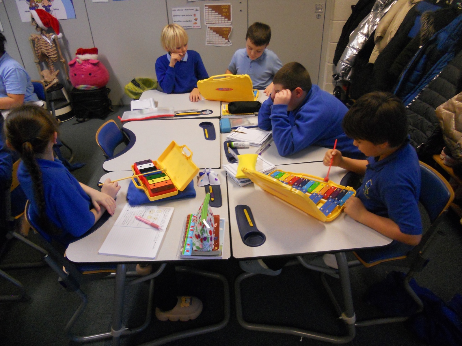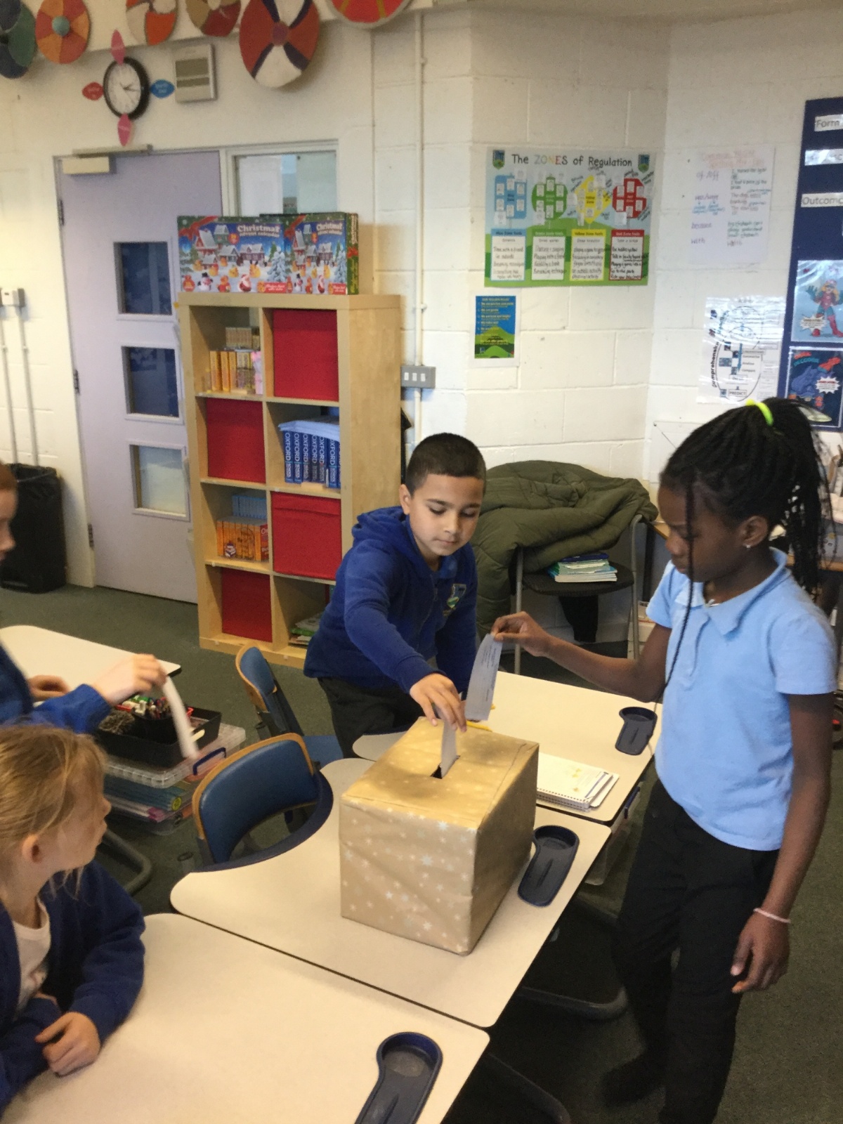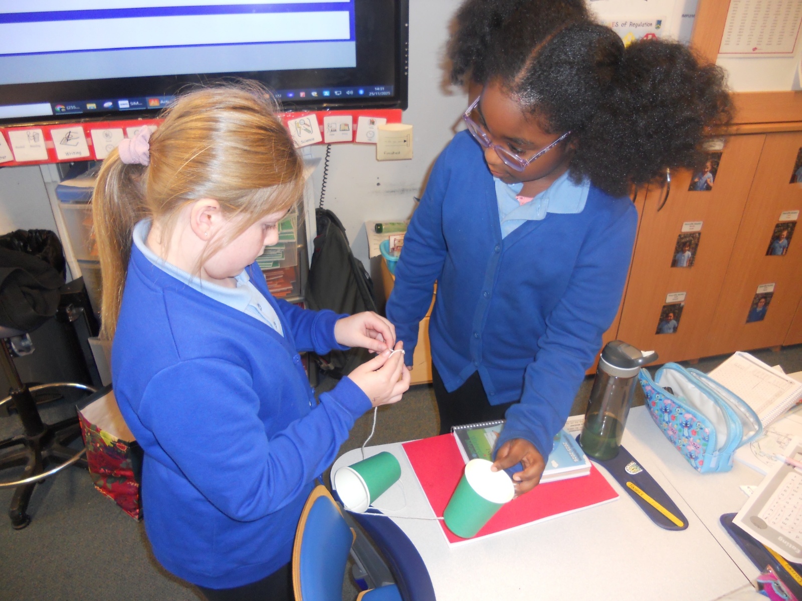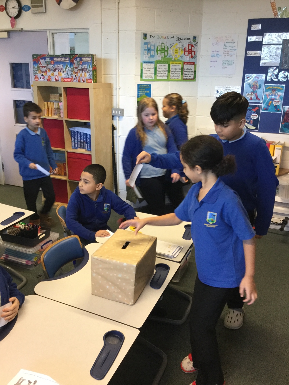 Our photos this week show description gathering in writing, decorating our treat boxes, creating cup telephones, investigating pitch in science and voting in our ballot boxes as a part of UK Parliament Week.